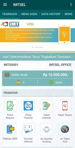 Aplikasi android IMTSEL adalah aplikasi mobile gratis untuk member-member setia IMTSEL di mana pun berada. Aplikasi ini memudahkan Anda dalam melakukan berbagai transaksi seperti pengisian pulsa, pembelian token listrik, pembayaran tagihan pasca bayar, pembelian voucher game, dll.