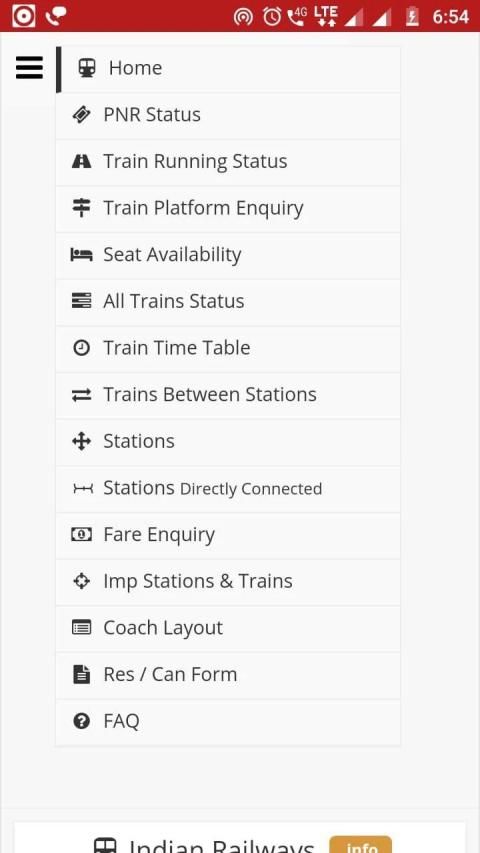 Disclaimer: We at INDIAN RAILWAY INFO believe that Indian Residents should check their ticket's PNR status hassle-free with our mobile app quickly! INDIAN RAILWAYS INFO is not affiliated with IRCTC, NTES or Indian Railways in any way. By using this app, you are solely responsible for any legal implications/liabilities arising from using the app. All content available in this app is for general information purpose and is intended for personal non-commercial use only. You are encouraged to re-verify the information from official sources. Some official railway sources for re-verification are http://www.indianrail.gov.in/, https://www.irctc.co.in and https://enquiry.indianrail.gov.in/.