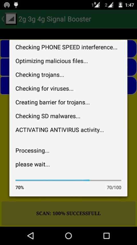 3. Tunggu sementara 'ponsel penguat sinyal' akan mensimulasikan proses scan atau meningkatkan