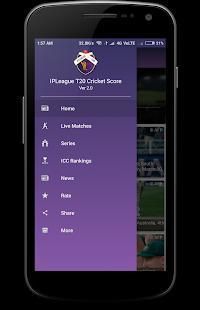 - IPLeague T20 berfokus pada pengiriman real time dari kriket skor hidup. Aplikasi ini ringan menargetkan apa-apa tapi skor kriket, yang mencakup semua tiga format T20 ini, ODI dan pertandingan Uji. Anda bisa mendapatkan nilai hidup ultra-cepat di layar android Anda dengan hampir tidak ada delay dengan Cricshot.