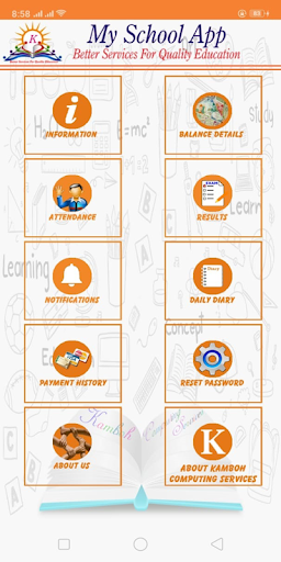 Using this app, you can get school kids information, outstanding amount details, payment history, attendance reports, each exam's result details, daily SMS, daily notifications and much more on just one two touches