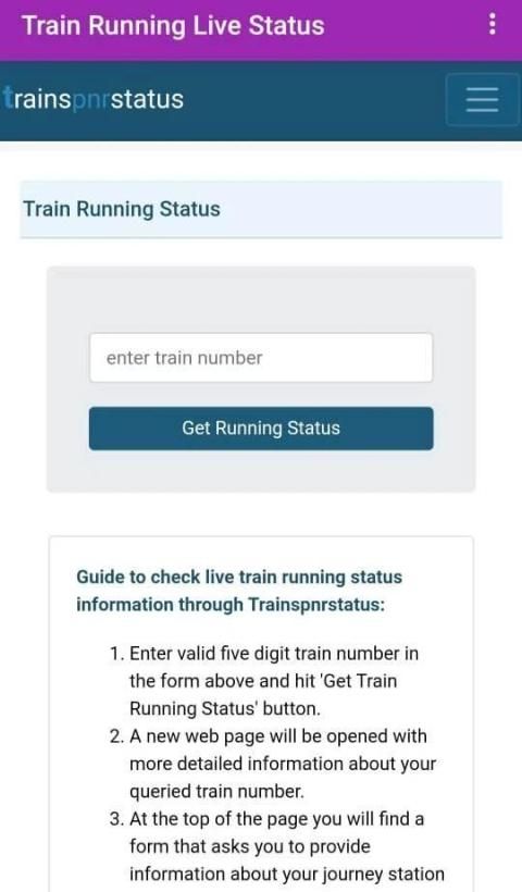 - Periksa status menjalankan kereta langsung untuk semua kereta Indian Rail yang berjalan di bawah Indian Railways