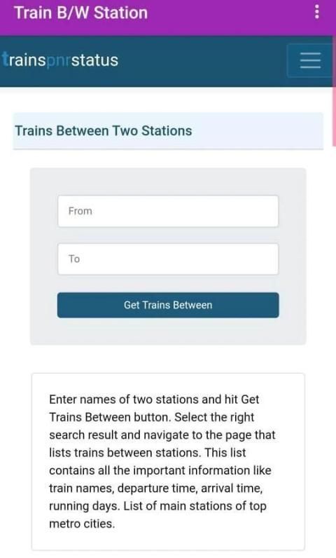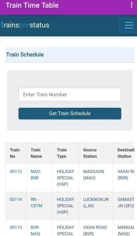 - find all Indian Rail trains timetable running under the Indian Railways in one click with start Station & End Station.