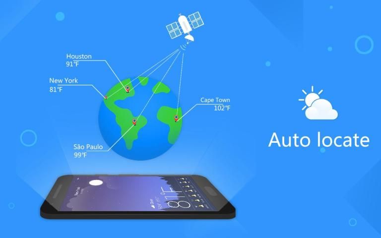 - Secara otomatis mendeteksi lokasi Anda, menyajikan Anda dengan kondisi cuaca yang akurat