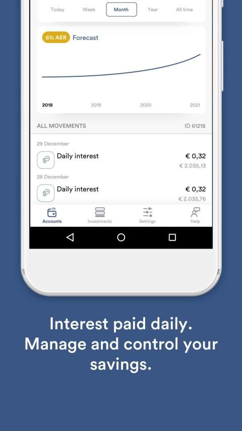 * Receive and view your interest every day or every month. Iban invests in different P2P loans for you. You can earn from 2,5% up to 6,0% depending on the investment account(s) you choose.