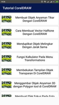 Aplikasi ini berisi kumpulan tutorial CorelDRAW untuk menyelesaikan berbagai proyek atau tugas design grafis yang sering dibuat untuk keperluan sehari hari. Materi tutorial CorelDRAW ini sangat lengkap dan full offline jadi bisa dipergunakan sebagai buku saku panduan bagi pemula dan profesional. Materi tutorial CorelDRAW ini akan terus diupdate dengan desain-desain yang mengikuti perkembangan jaman.