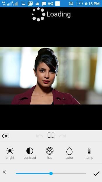 * Efek: koreksi gamma, kontras otomatis, nada otomatis, getar, blur, pertajam, cat minyak, sketsa, kontras tinggi hitam & putih, sepia, dan lainnya
