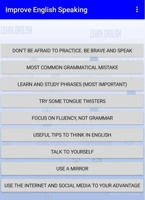Ini adalah aplikasi dasar untuk meningkatkan kemampuan berbahasa Inggris. Ini adalah alat yang ampuh untuk belajar berbicara bahasa Inggris dengan lancar.