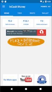 InCash Money adalah aplikasi penghasilan online. InCash Money memberikan kepada pengguna aplikasi mudah untuk meningkatkan dompet paytm mereka.