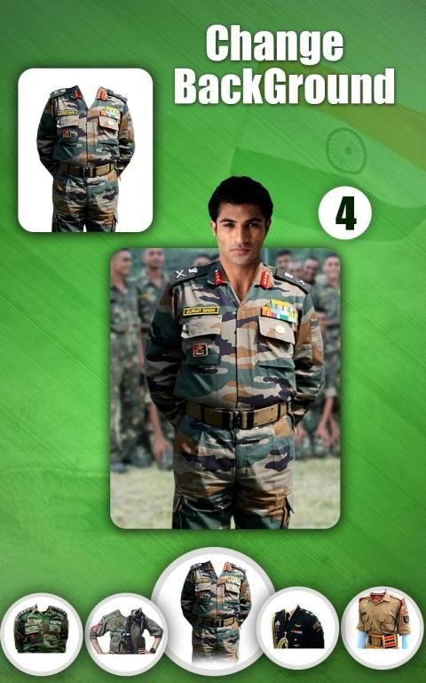 Di sini Anda dapat melihat bagaimana Anda melihat pakaian ini jika Anda membeli pakaian ini dari pasar. Jadi Anda bisa dengan mudah mendapatkan ide terkait pakaian yang dikenakan atau baju tentara. Editor Foto Pasukan Tentara India - menyediakan berbagai jenis jas tentara untuk pria dan wanita dengan beberapa warna dan ukuran. Dengan ini editor foto tentara India menghibur diri dengan keluarga dan teman-teman dengan editor jas tentara dan mengambil jas tentara India terbaik yang sesuai dengan kepribadian Anda dan menunjukkan diri Anda seorang prajurit.