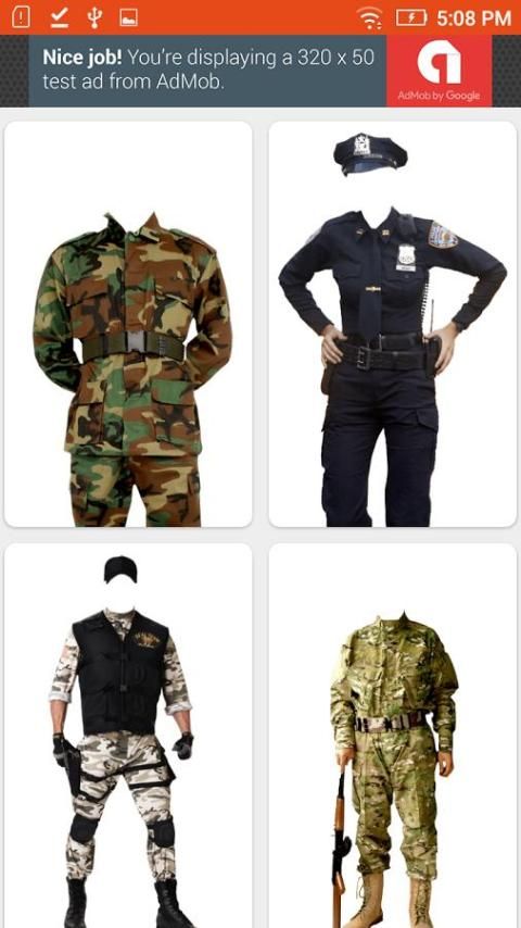 ==> Hanya mengambil gambar wajah Anda dan memilih pakaian yang satu tentara dari dress tentara dress foto aplikasi kita.