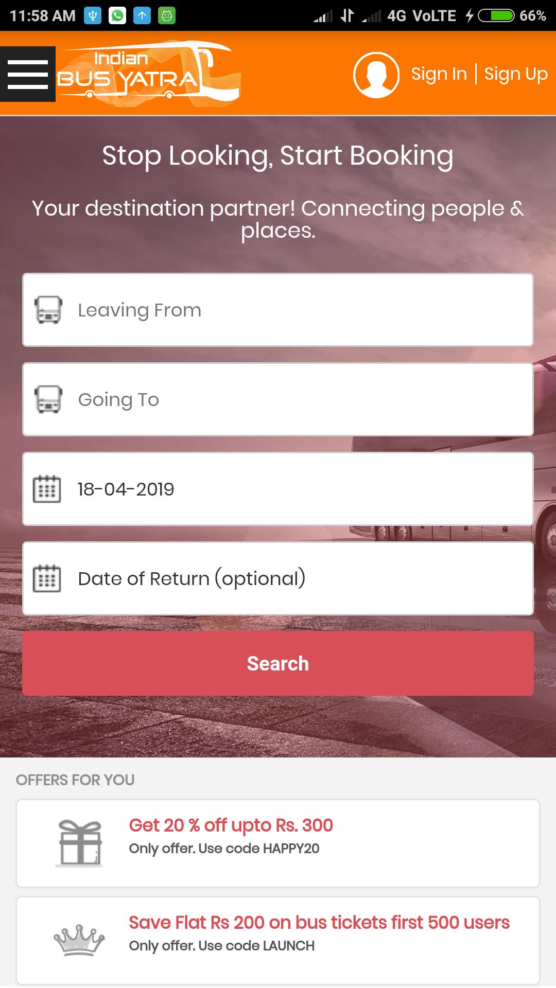 IndianBusYatra.com is an India’s largest online bus booking system that provides hassle free bus booking experience. The company provides information, pricing, availability, and booking facility for online bus ticketing booking in India. You can select your desired bus seats, bus type & bus operators. You can select from wide range of available buses like Volvo, Mercedes, AC Luxury, Deluxe, Standard, Sleeper and other Government buses. Choose your destination, select bus, check seat layout, select seats, and book your ticket in just a click. You have various online payment options like the debit/credit card, net-banking and also e-wallets. You can also do instant ticket cancellation, get refund easily & rebooking. Through our website IndianBusYatra.com, we offer travel related services i.e. Online Bus Ticket Booking, Bus Hiring and Online Bus Booking for Pilgrimage tours. IndianBusYatra.com is an excellent and trustable travel brand of India for bus booking. We are dedicated to ensure excellent user experience on our site and provide 24/7 customer support at every stage to all the passengers.
