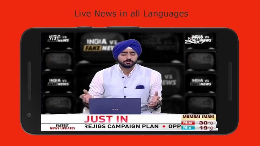Watch Live TV News in all Indian Languages.
