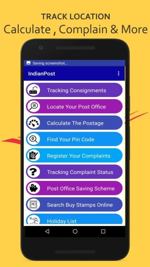 India Post Sistem Pos di India, aplikasi ini menyediakan Kecepatan pasca status, Jalur Konsinyasi, Kantor Pos Locator, pengiriman Tracker, Menyimpan Skema Informasi dan berbagai layanan penting lainnya terkait dengan pos & tabungan.