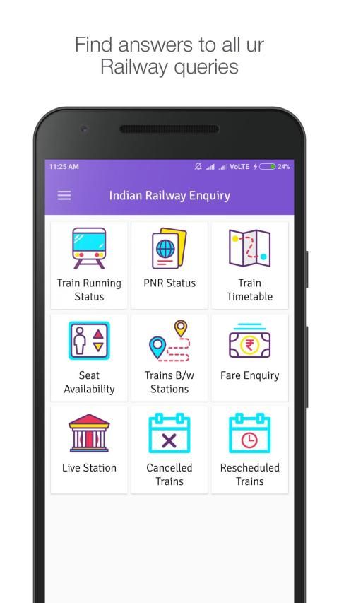 "Indian Railway NTES" App is designed to quickly provide answers to Indian Railway queries. Check Train Running Status Live,Train Time tables & PNR status. All Indian railway inquiries info are cached offline for quick rechecking. Indian railway App provides Ease of Use, Navigation across pages and Rich User Interface.