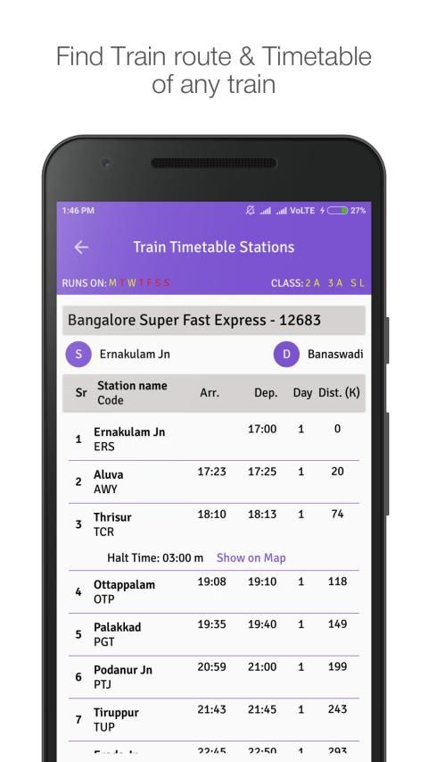Know train schedule and route of train with halt duration at its stops.You can see the location of station in google maps.