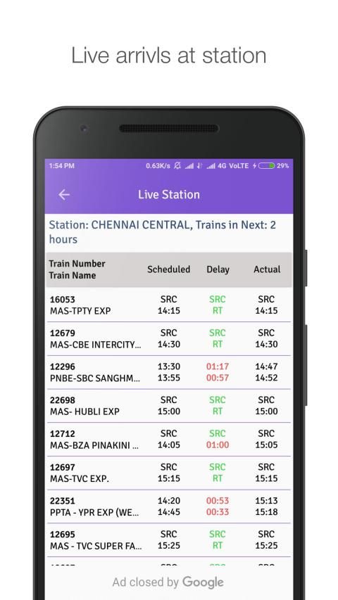Know all trains arriving or departing at any station in next 4 hours with live station status.