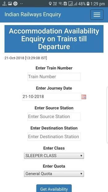 check PNR status Of Indian Railway,check train details between station,check ticket availability and more details,Train Fare Inquiry.very easy to use just Enter PNR and check details.you can also check seat availability.