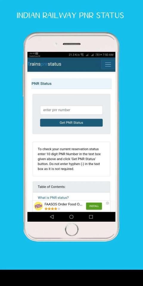 Live running train status, time tables, station status, PNR enquiry with prediction, a unique berth & seat calc, and reservation date calc for Indian Railways.