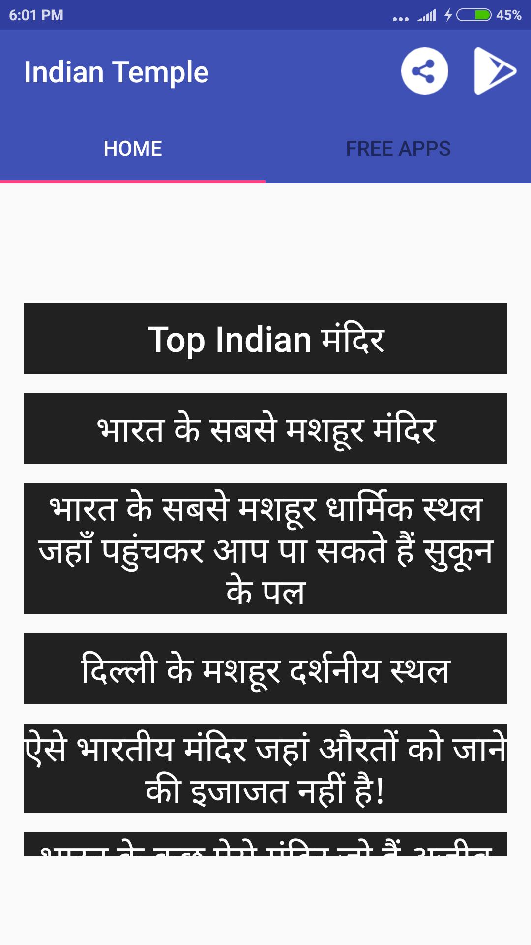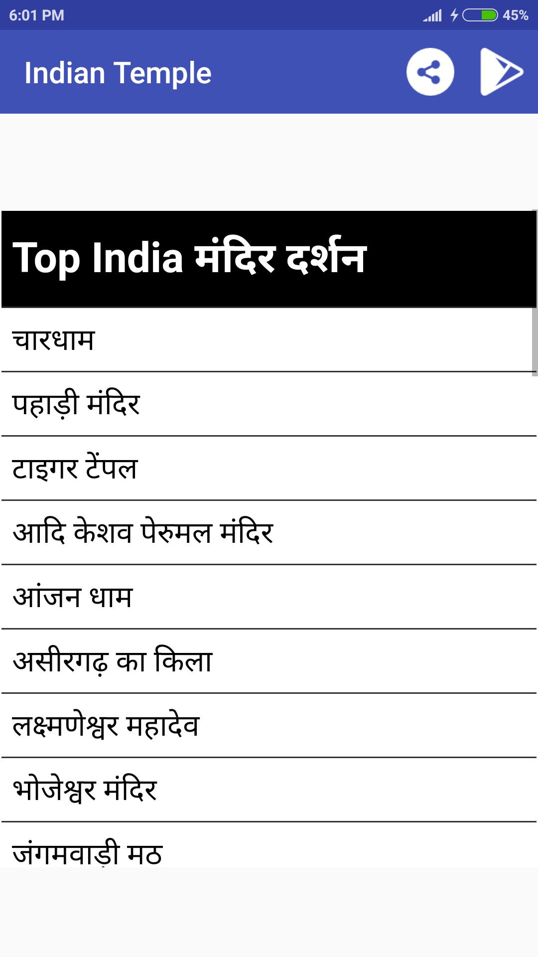 This application provides information about various indian temples, their pictures and architecture and many more details.