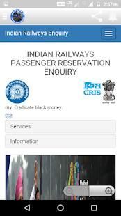 Get all information and services for Indian trains , seat availability , ticket booking , PNR , Train location and other recommended services .