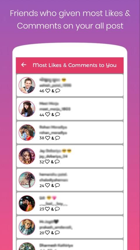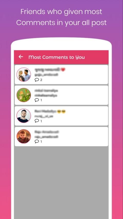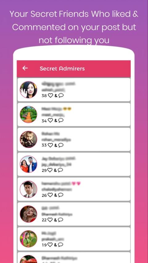 Wanna see who blocked you in instagram? or Who are not following you back? Then just download this amazing app. You will get Followers list, list of friends who not follow back, Get likes list, Unfollowers list, blocked You user, most like and commented friends list in this app. So you can easily manage your insta account from this app.