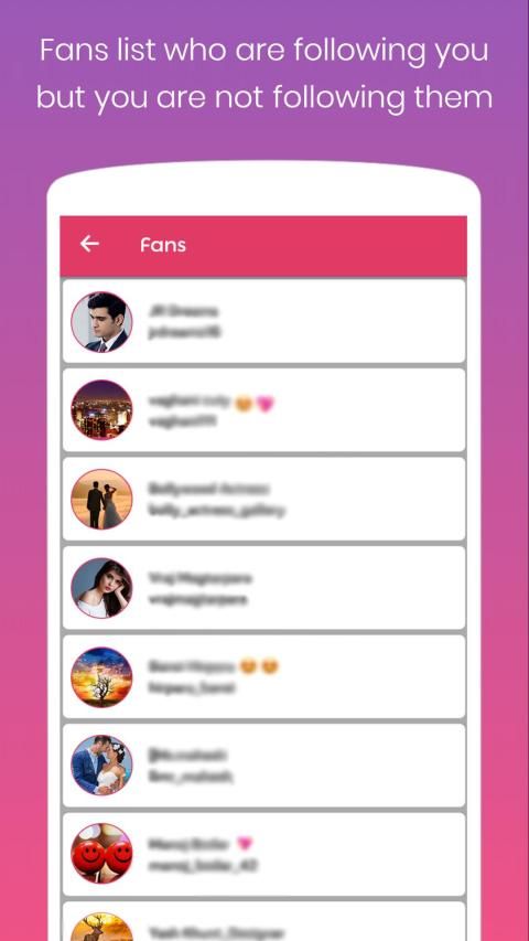 Ingin melihat siapa yang memblokir Anda di Instagram? atau Siapa yang tidak mengikuti Anda kembali? Maka unduh saja aplikasi luar biasa ini. Anda akan mendapatkan daftar Pengikut, daftar teman yang tidak mengikuti kembali, Dapatkan daftar suka, daftar Tidak Mengikuti, diblokir pengguna Anda, paling suka dan berkomentar daftar teman di aplikasi ini. Jadi Anda dapat dengan mudah mengelola akun insta Anda dari aplikasi ini.