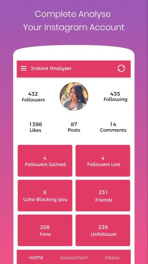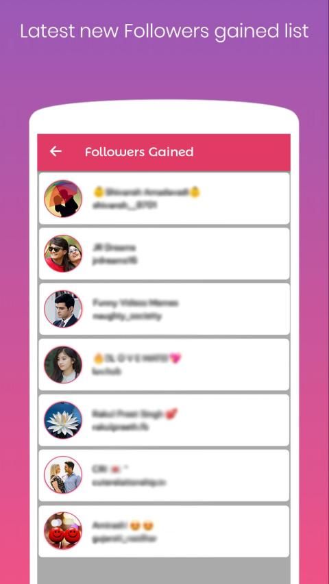 Dari aplikasi ini, Anda dapat dengan mudah melihat Gained Follower, berhenti mengikuti untuk Instagram, Siapa yang tidak mengikuti kembali, siapa yang memblokir Anda, siapa yang paling menyukai Anda, yang paling berkomentar pada Anda, dll.