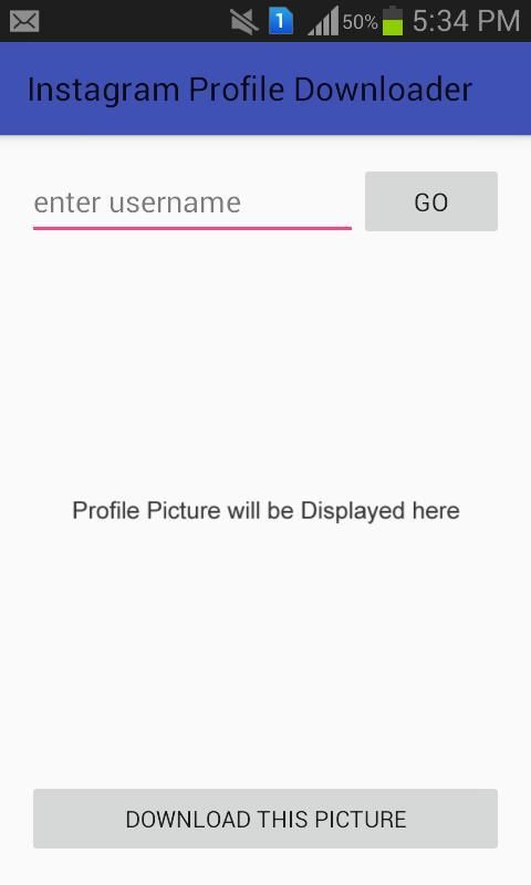 Aplikasi ini adalah untuk men-download gambar profil instagram. Ketik setiap nama pengguna pada kotak pencarian dan kemudian akan mengambil hanya sebentar saja untuk melihat gambar profil yang peron pada ponsel android Anda, tablet atau anyother hal yang Anda gunakan. Setelah melihat bahwa gambar profil Anda juga dapat men-download gambar dalam galeri Anda hanya dengan mengklik tombol download di ujung layar.