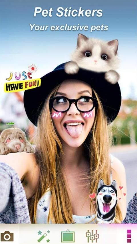 Membuat foto fantastis dengan Pokes Menempel & Doggy Wajah Stiker dan mendapatkan lebih banyak selera dan tindakan dan lebih pengikut menggunakan foto ini jepret! Karena stiker, emoji dan filter yang Anda pilih akan disimpan dalam gambar yang Anda mempublikasikan, mereka akan sama di perangkat Android dan iPhone.