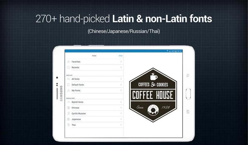 - Lebih dari 270 dipilih sendiri font Latin dan non-Latin, atau mengimpor sendiri