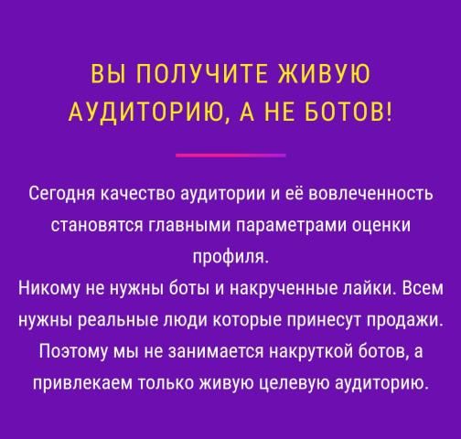 ВЫ ПОЛУЧИТЕ ЖИВУЮ АУДИТОРИЮ, А НЕ БОТОВ!