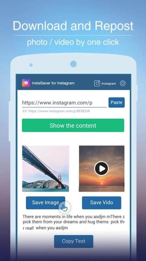 InstaSaver untuk Instagram adalah aplikasi gratis yang membantu Anda menyimpan / men-download publik Instagram Foto dan Video ke ponsel Anda.