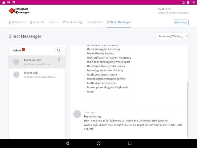 Instagram Messenger - Multiple Instagram Accounts Messenger is the tool to help people grow their business through Instagram marketing. We wish you good luck in your business.