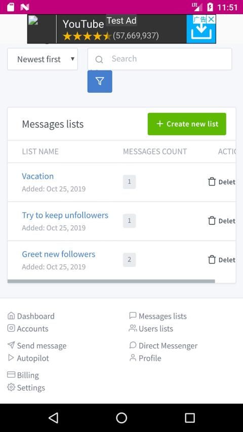 Now move to next tab called Autopilot. This is the automatic action handler of messaging system in Instagram Messenger. you can select your targeted customer and message you wish to send automatically whenever action is taken. Such as, you want to send a particular message whenever you get a new follower in your particular account. You can do automation here. Just check it out you will get complete idea about it.