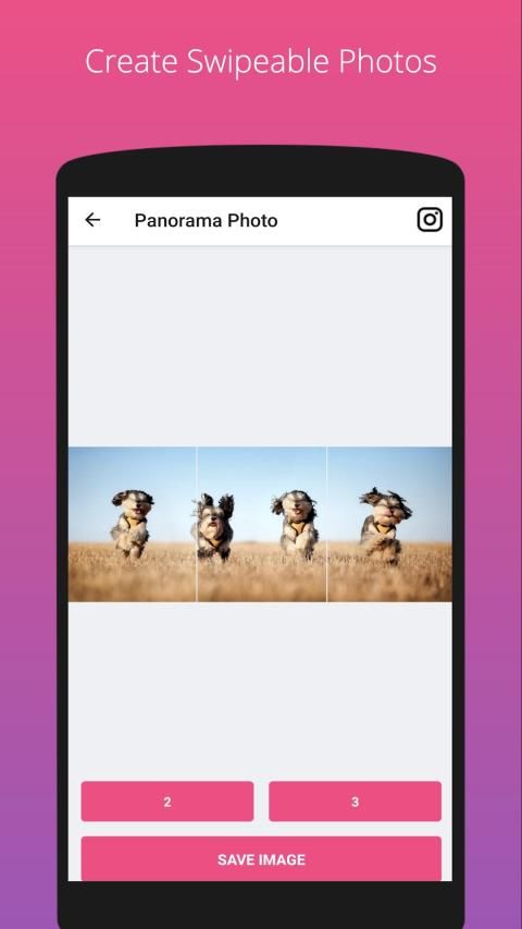 - Create a panoramic style photos. Select any image and convert it into 2 or 3 swipable images.