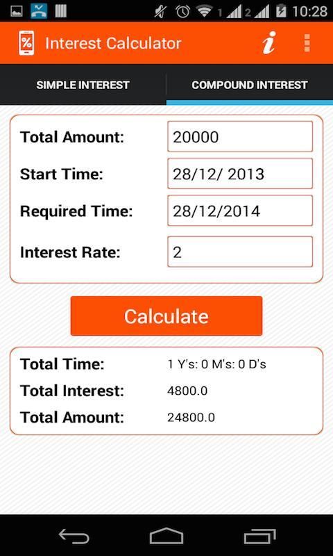 Kalkulator bunga sebagian besar dan efisien digunakan untuk menghitung bunga sederhana dan bunga dengan mudah.