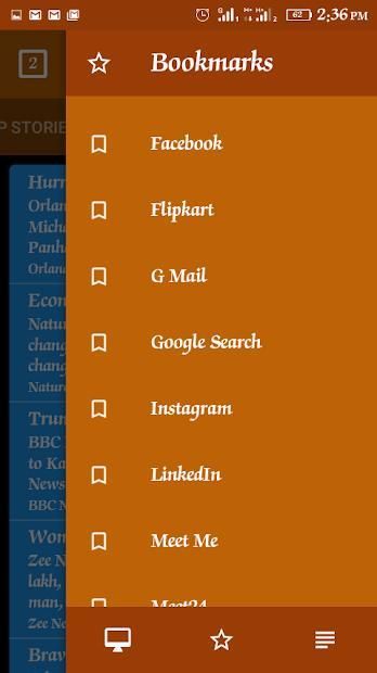 * Geser ke kiri atau kanan untuk mengakses bookmark dan keran baru Anda dengan cepat.