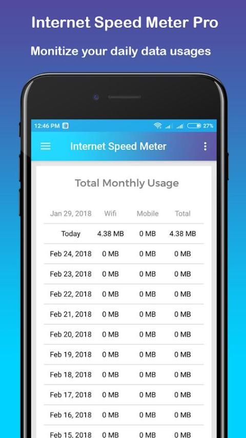Jaringan Speed Meter Penggunaan Internet Dan Wi-Fi Harian digunakan Laporan Data Dan Tampilkan Tanggal Dalam kanan sisi