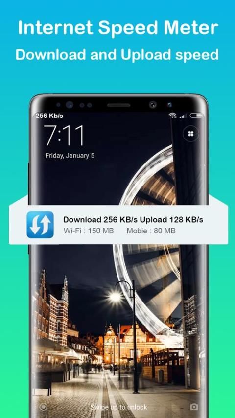 Menampilkan kecepatan internet anda dalam status bar (Download / upload) dan menunjukkan jumlah data yang digunakan dalam panel notifikasi. Hal ini membantu Anda untuk Memantau Koneksi Jaringan kapan saja saat menggunakan perangkat Anda.