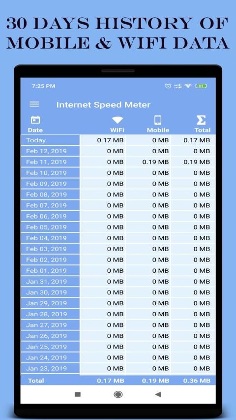 - Kecepatan Internet Langsung Memantau Data Lalu Lintas Anda Selama 30 hari terakhir.