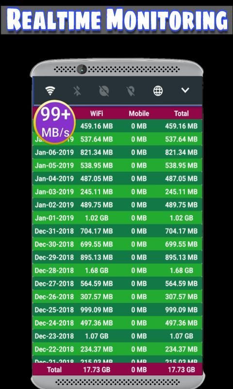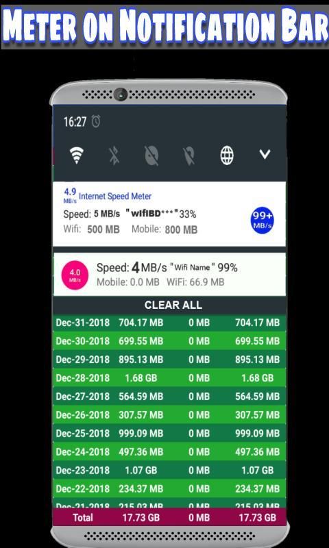 18.Real-Time WiFi & mobile data usages by notification panel