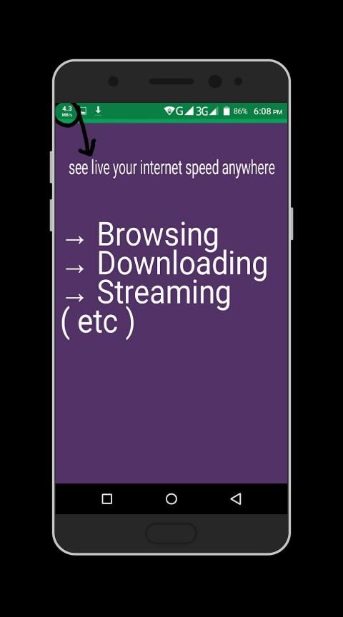 Ini sangat mudah, Anda hanya men-download dan membuka aplikasi kami, melihat Status Bar, Anda akan melihat kecepatan internet anda menunjukkan.