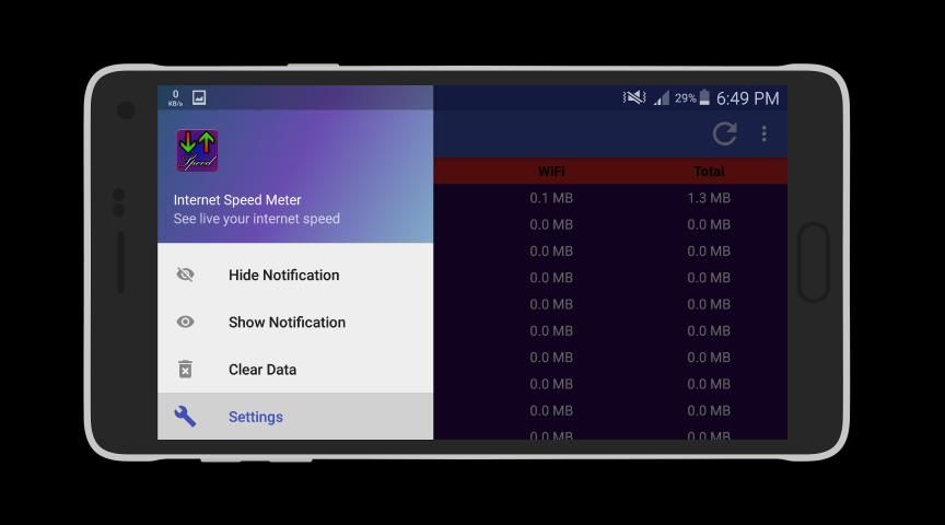 It's very easy, you just download and open our app, look at the Status Bar, you'll see your internet speed showing.
