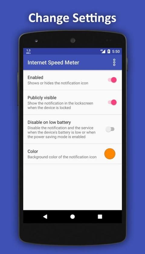 - Ganti Warna Pemberitahuan Icon Dan Terhubung Nama Kecepatan.