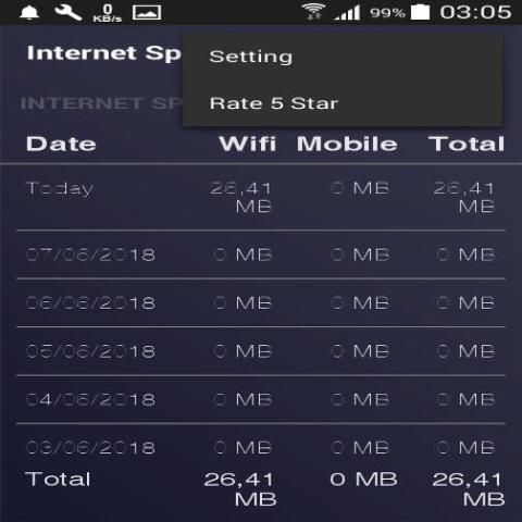Speed Mobile Internet and WiFi And Use Of The Current Day As Well As Internet Speed Alerts In The Notification Bar.