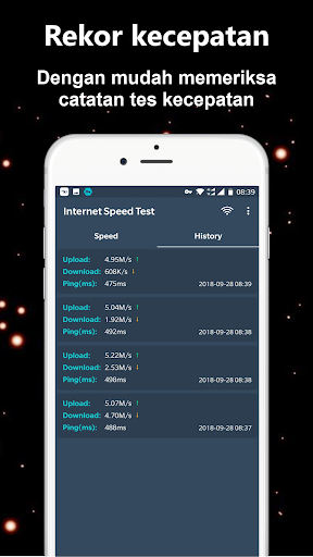 ■ Simpan hasil tes kecepatan internet di masa lalu secara otomatis.