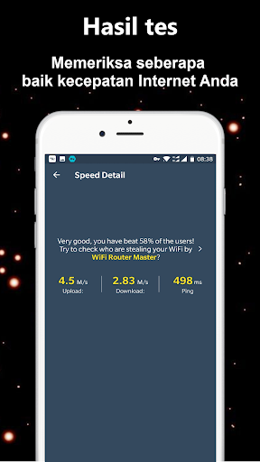 Aplikasi kami dapat menguji kecepatan internet untuk koneksi seluler Anda termasuk hotspot WiFi, LTE, 4G, jaringan 3G. Gunakan Tes Kecepatan Internet - Tes Kecepatan WiFi untuk dengan mudah menjalankan uji kecepatan internet dan mengukur kecepatan internet Anda dengan mengikuti tes kecepatan seluler atau wifi.