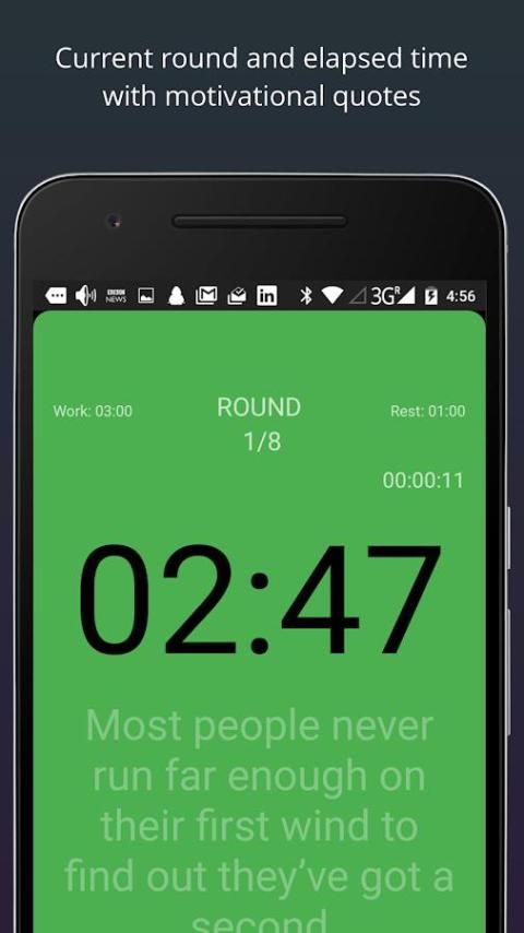 antarmuka yang sederhana eluar Timer ini akan membantu Anda fokus pada latihan Anda tanpa khawatir berapa lama yang tersisa di setiap putaran latihan.