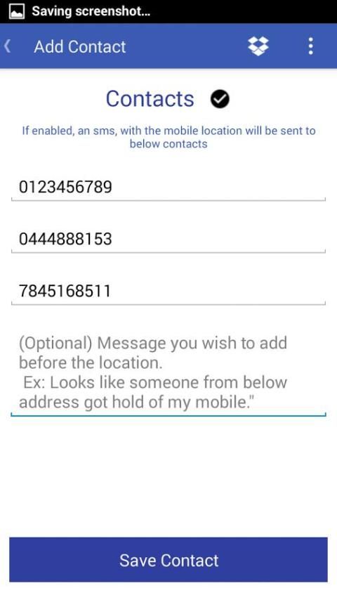 - Mengirim foto dan lokasi ketika seseorang messes dengan perangkat Anda dengan kontak yang telah ditetapkan juga sinkron dengan akun Dropbox Anda.